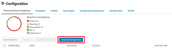 Once the catalog is created, go back to Configuration > Firmware/Driver Compliance and add a new compliance rule based on that catalog.